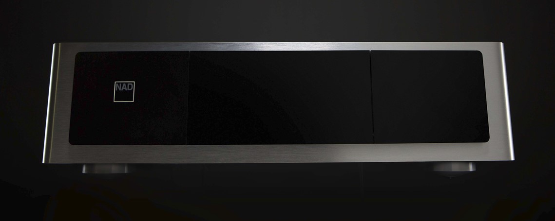 So komplex der Innenaufbau des Gehäuses ist, so schlicht gibt sich die Außenansicht. Die massive Frontplatte, der Deckel und das verwindungssteife, extrem stabile Chassis glänzen im für die NAD MASTERS Serie typischen zweifarbigen schwarz-silbernen Look.