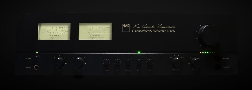 Das Industriedesign des C 3050 wurde vom Stereo-Verstärker NAD 3030 inspiriert, einem Klassiker der 1970er Jahre. Zu den Vintage-Stilelementen gehören zwei beleuchtete VU-Meter, Drucktasten für die Quellenwahl, ein walnussfarbenes, vinylverkleidetes Gehäuse und eine dunkelgraue Frontplatte mit dem originalen New Acoustic Dimension-Logo in der kursiven Schrift der 1970er Jahre.